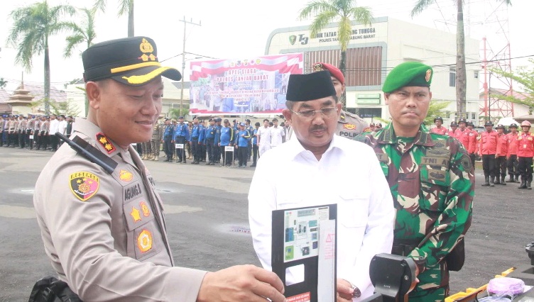 Apel tersebut dipimpin langsung oleh Kapolres Tanjung Jabung Barat AKBP Agung Basuki, S.I.K., M.M., dan diikuti oleh unsur Forkopimda Kabupaten Tanjung Jabung Barat, para pimpinan instansi vertikal, kepala perangkat daerah terkait, serta personel dari berbagai unsur penanggulangan bencana.