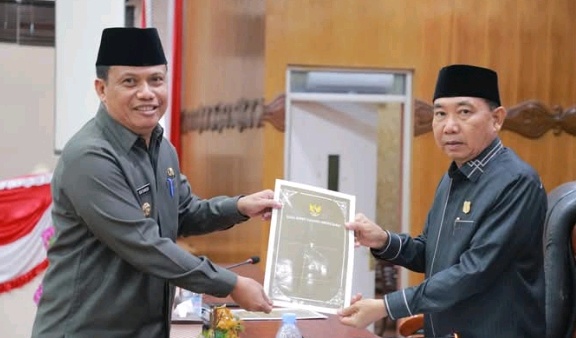 Penandatanganan Berita Acara Persetujuan Bersama antara Pemerintah Kabupaten Tanjung Jabung Barat dengan DPRD Kabupaten Tanjung Jabung Barat terhadap Rancangan Perda Kabupaten Tanjung Jabung Barat tentang Rencana Pembangunan Industri Kabupaten Tanjung Jabung Barat Tahun 2025-2045.
