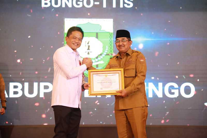 Selain itu, Gubernur Jambi Dr. H. Al Haris, S.Sos, MH menerima Piagam Penghargaan dari BSSN karena Provinsi Jambi menjadi provinsi keenam yang telah melaksanakan pembentukan dan registrasi TTIS secara lengkap di seluruh kabupaten/kota.